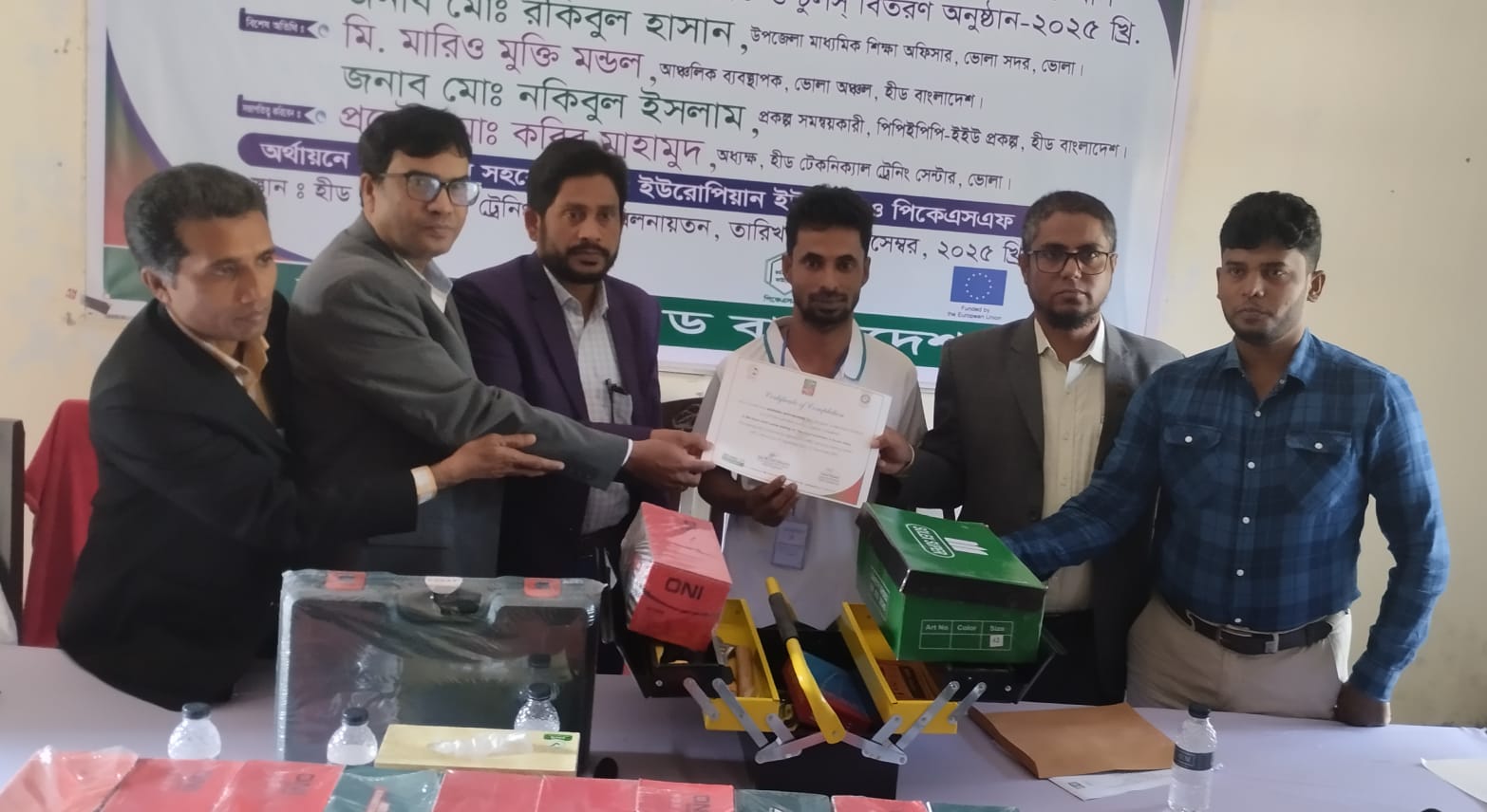 ভোলায় হীড টেকনিক্যাল স্কুলের ৩০ প্রশিক্ষনার্থী পেল মেকানিক্যাল টুলস