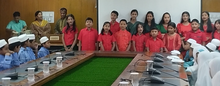 ভোলা জেলা প্রশাসক কার্যালয়ের সম্মেলন কক্ষে অনুষ্ঠিত উদ্বোধনীর শেষ পর্বে শিশু একাডেমির সংগীত প্রশিক্ষক আঁখি দে ও বাদ্যযন্ত্রী পরিচালক ভাস্কর মজুমদার এর যৌথ পরিচালনায় একটি যৌথ সংগীত পরিবেশন করেন শিশু একাডেমির শিশুরা।