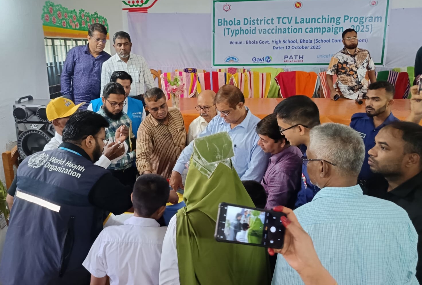 সারা দেশের সাথে এক যোগে ভোলায় শুরু হল বিনা মূল্যে টাইফয়েড জ্বরের প্রতিরোধক টিকা বা টিসিভি ভ্যাকসিন কর্মসূচি।