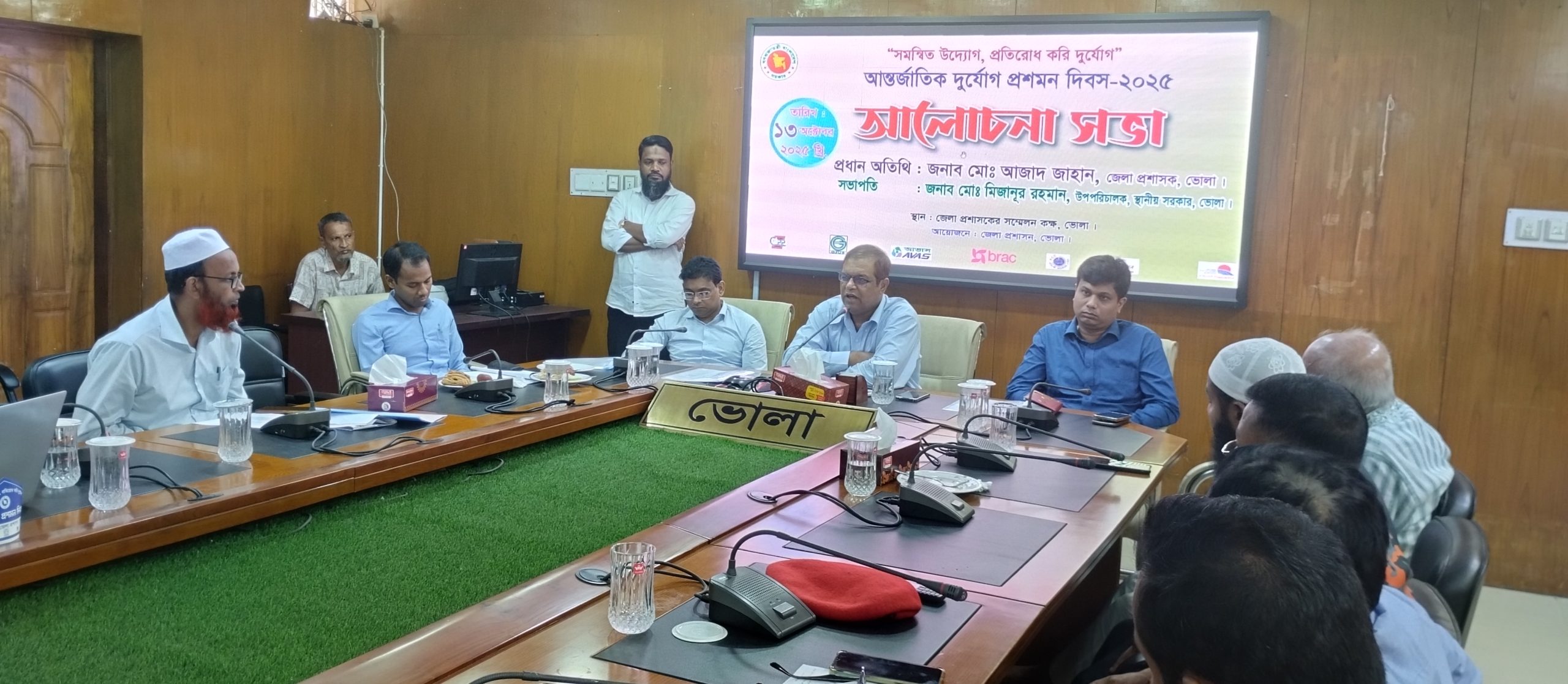 স্থানীয় সরকার বিভাগের উপ পরিচালক মোঃ মিজানুর রহমান এর সভাপতিত্বে অনুষ্ঠিত সভায় প্রধান অতিথি ডিসি আজাদ জাহান বলেন,”প্রাকৃতিক সৃষ্ট দুর্যোগ প্রতিরোধ করার ক্ষমতা আমাদের না থাকলেও মানব সৃষ্ট দুর্যোগ প্রতিরোধ করার ক্ষমতা আমাদের আছে”।