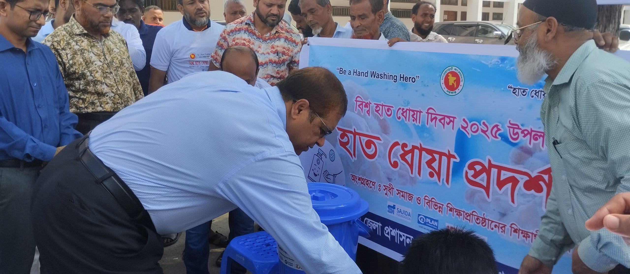 বিভিন্ন স্কুলের শিক্ষক-শিক্ষার্থী ও এনজিও প্রতিনিধিদের অংশগ্রহণকৃত রেলি শেষে অনুষ্ঠিত হয় হাত ধোয়া প্রদর্শনী। প্রদর্শণীতে ডিসি আজাদ জাহান নিজের হাত সঠিক পদ্ধতিতে ধুয়ে উপস্থিত সকলকে নিয়মিত হাত ধোয়ার পরামর্শ প্রদান করেন।