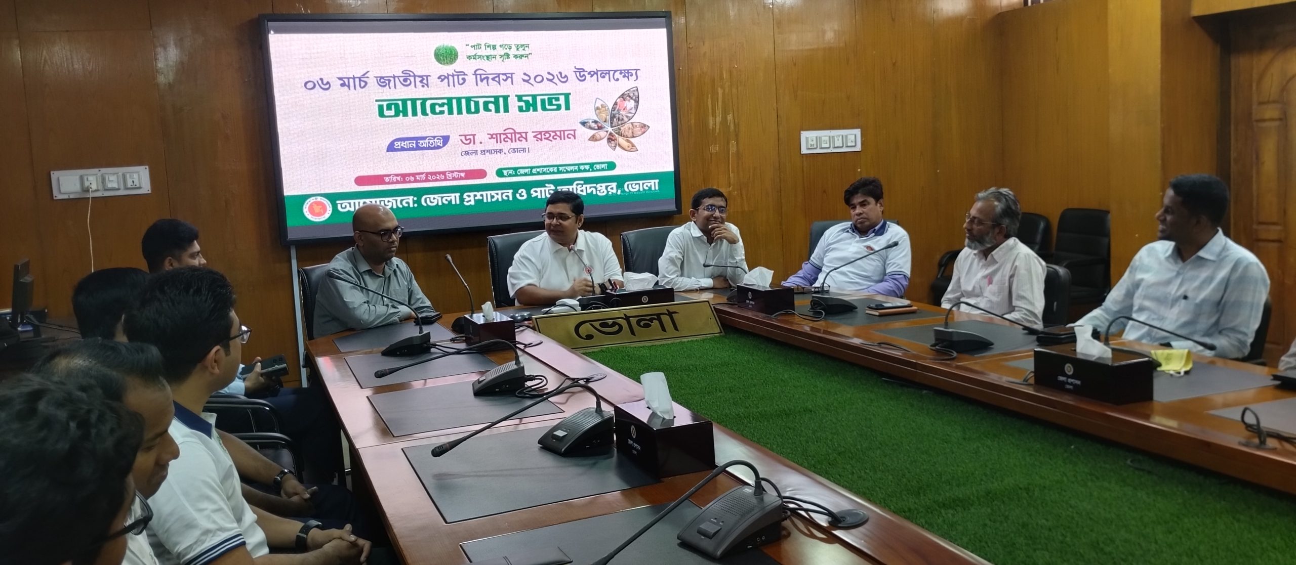 “পাট শিল্প গড়ে তুলুন,কর্মসংস্থান সৃষ্টি করুন” এই প্রতিপাদ্যকে সামনে রেখে ভোলায় উদযাপন করা হল জাতীয় পাট দিবস-২০২৬।