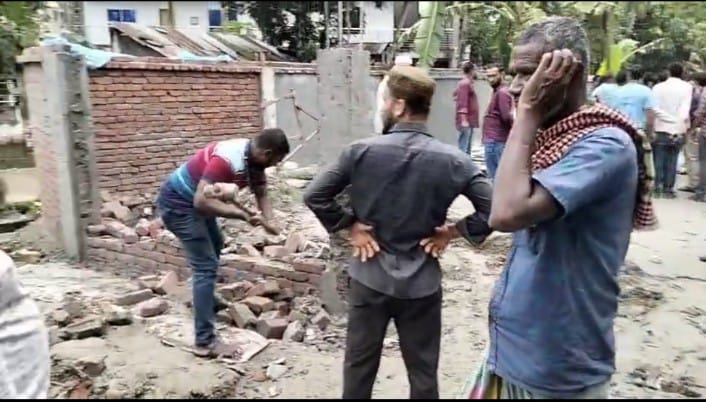 এ সময় কোর্টের অনেক কর্মচারীসহ বেশ কিছু লোক সাবলসহ অন্যান্য লোহার যন্ত্রাংশ ব্যবহার করে নবনির্মিত ওয়ালের দুই প্রান্ত ভাঙ্গার কাজ সম্পন্ন করে এবং ভাঙ্গা অংশগুলো সরিয়ে ফেলেন।