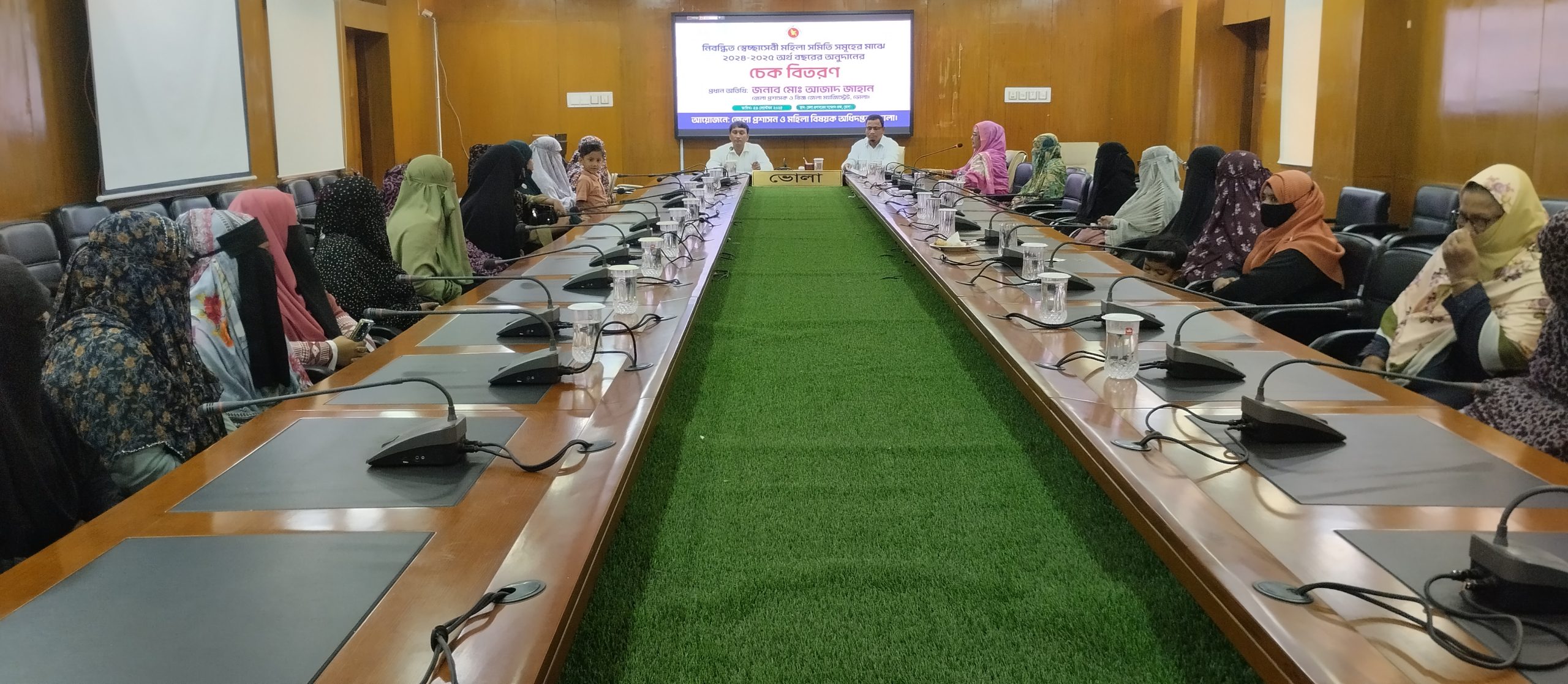 ভোলা জেলা প্রশাসন ও মহিলা বিষয়ক অধিদপ্তরের যৌথ আয়োজিত চেক বিতরণ অনুষ্ঠানে প্রধান অতিথি হিসেবে জেলা প্রশাসক মোঃ আজাদ জাহান উপস্থিত থাকার কথা থাকলেও তিনি সরকারি জরুরী কাজে ব্যস্ত থাকায় প্রধান অতিথির বক্তব্য রাখেন অতিরিক্ত জেলা প্রশাসক(সার্বিক)মোঃ বেলাল হোসেন।